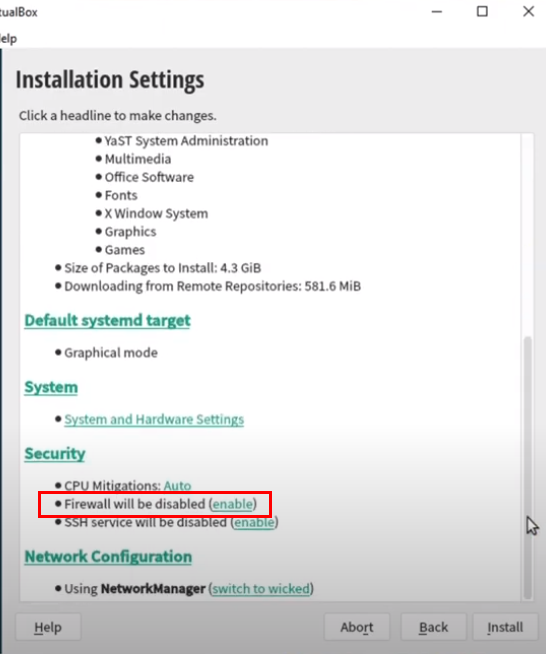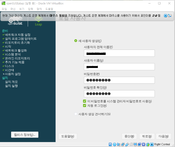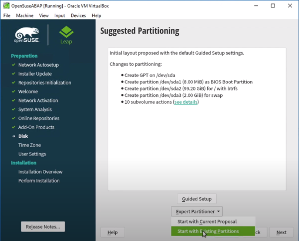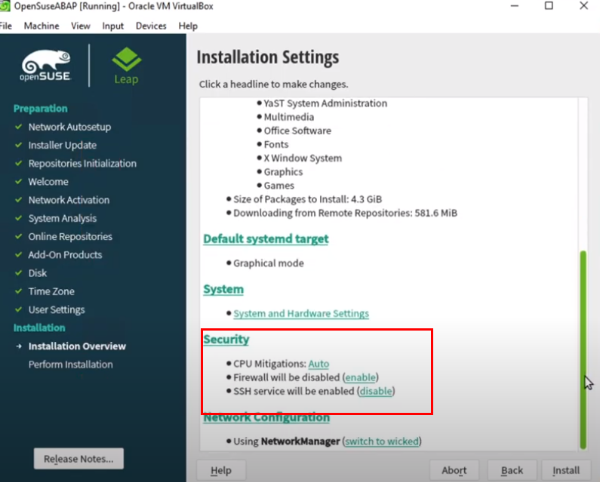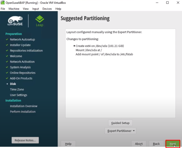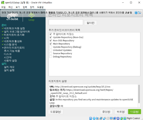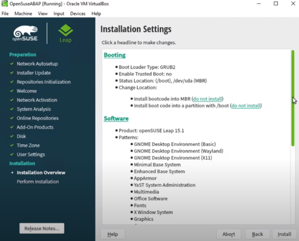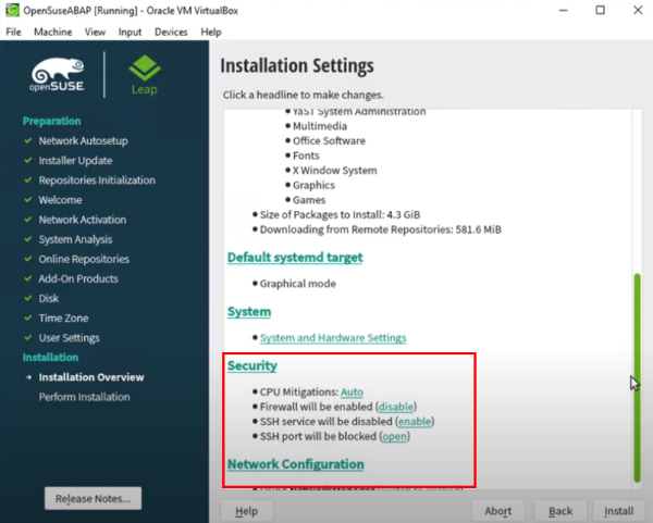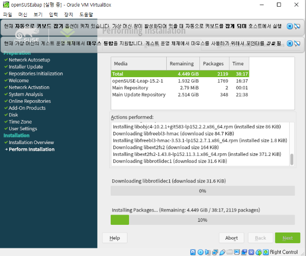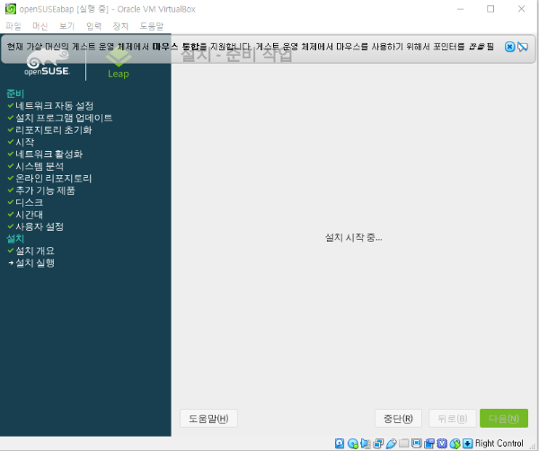 세팅을 완료하셨다면 Install OpenSUSE 설치를 진행해주세요