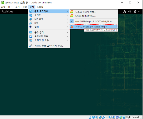 장치-광학드라이브-가상 드라이브에서 디스크꺼내기를 해줍니다.