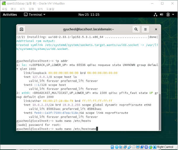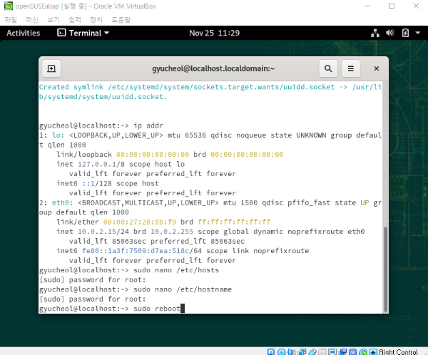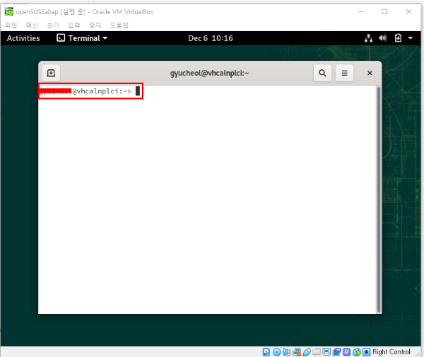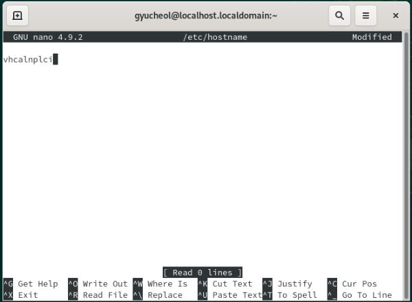 reboot 설정이 정상적으로 되었다면 아래처럼 localhost에서 vhcalnplci로 바뀌었다면 제대로 설치가 된 것입니다.