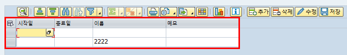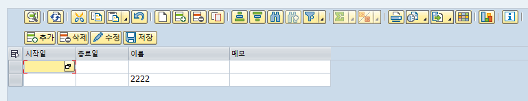 추가로 현재 스탠다드 툴바 제외 로직이 있는 상태인데 만약 스탠다드 툴바를 모두 사용하게 한다면 아래와 같이 됩니다. 툴바가 엄청 많죠^^? 기본적인 INSERT/DELETE/NEW LINE을 해주시는 거라면 스탠다드 툴바를 사용해도 무관합니다. 단, 추가, 삭제가 일어날 때 Handling이 필요하다고 한다면 커스터마이징으로 툴바를 만들어주시면 됩니다.